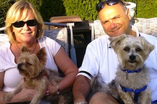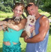 ![]() | Just wanted to send you this pix of Barnsie and me on our vacation in Lavallette, NJ jersey shore this July. Barnsie is healthy, happy, and bringing Michael and I joy and giggles every day. He is fearless (and sometimes reckless), but full of fun, life, and silliness. He is a perfect fit for our home, and makes us laugh everyday. I hope and wish many more of your special puppies find their way home through you. Best, Beverly |