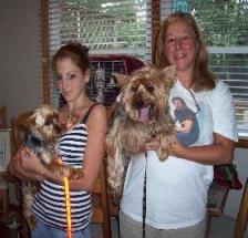 ![]() | I just wanted to drop you a note to let you know how well Gabbie's (Brielle) is doing. She walked in the door the first night like she owned the place and never looked back! She eats like a horse and currently weighs 4.8 pounds. I have to wonder if I'll ever be able to keep her in full coat....she is such a dirt ball!! She LOVES the backyard and is relentless when it comes to chasing the squirrels and always has her face in the dirt to see what she can stir up. Fortunately for her, we have a bumper crop of moles this year so she is forever entertained. She still hasn't quite figured out what the garden toads are all about. She pokes them but they just won't move! She's so expressive - when she looks at you with those big brown eyes, she lookes right into your soul. She's just a little pixie! I hope all is well with you. I see you still have Friday........... Linda |