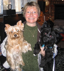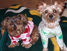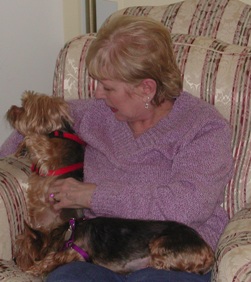 ![]() | We are so thrilled to have Ashley (Blossom) as part of our new addition to our family. She and Cody are inseparable. Ashley has decided that she loves Cody's bed better then her's so we switched. He does not mind. I love to watch them groom one another. She is adjusting very well and plays most of the day with Cody when she is not napping. We have lot's of toys so they are both very busy at play. Steve and I think of her as our little girl. She has a wonderful personality and loves to cuddle next to me. (No worries...we don't let them in the back yard with out us to surervise). Thanks to Yorkie Rescue Me. |