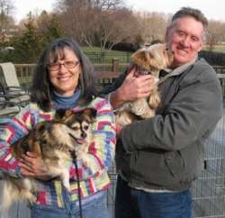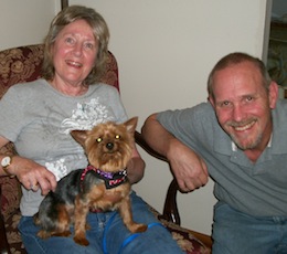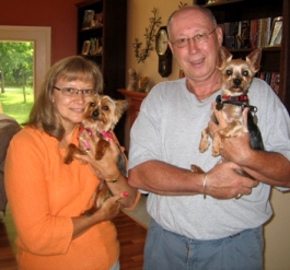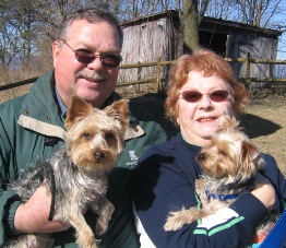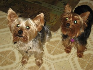 ![]() | Do you remember Kylie? She is the poor little girl who was locked in a cage for years before we got her. She is doing fine. We had to put her on thyroid pills but she is an upright yorkie who keeps varmints and other undesirables out of her yard by being well... just a noisy yorkie. She is very very diligent about this task and the yard is indeed hers. She has become the fiercest creature she knows. She and her sis molly are best friends. See you at Small Dog Expo. Hope she remembers you as being her savior. Kylie remains the sweetest most affectionate and loving little friend we've ever known. It seems that she wants to make up for those lost years in the cage, and she just absorbs attention and gives it back doubled up. Best Keith and Joyce |