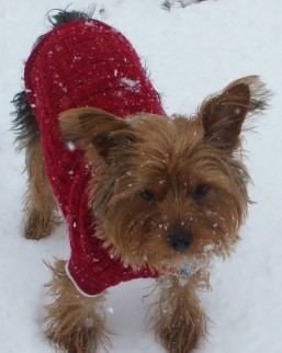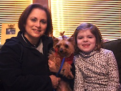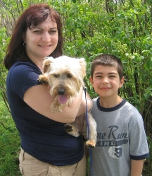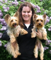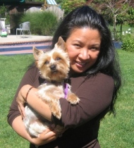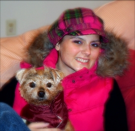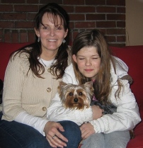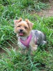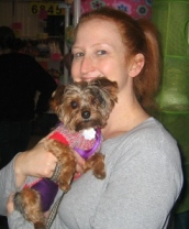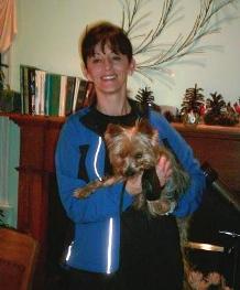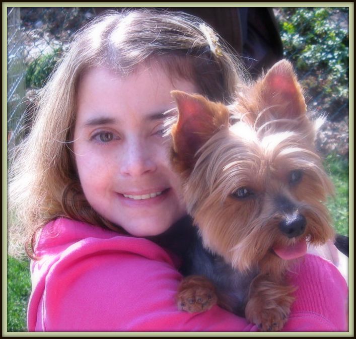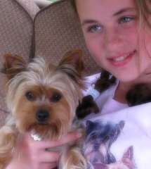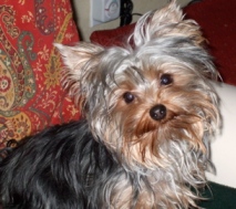 ![]() | We adopted our dear Yorkie, Sophii in October of 2009. She is doing GREAT! This fall we finally beat the demodex mange that just lingered and lingered. I have dropped my gym membership as I loving walking and walking her! I have a totally new appreciation for the seasons because of her. She is quite the “doll” of the neighborhood and is a good sport when we layer her in various seasonal outfits. She hasn’t taken to clips in her hair, but boy is she otherwise trainable! She responds to many, many commands. We adore our dear Sophii! We had never owned a dog before, yet now we can’t imagine our lives without her! What a joy, what a cutie. |