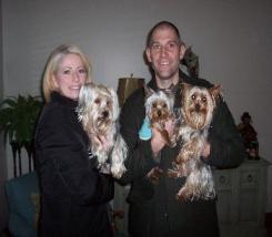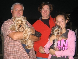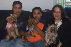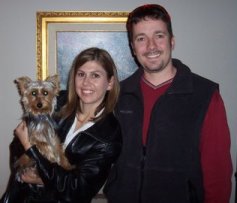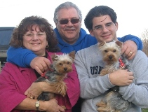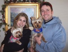 ![]() | We have added Preston, formerly Beau, to our beautiful family. Preston has adjusted nicely as if he has always been with us. He is a great, loving and friendly Yorkie. Parker has adjusted to his new big brother (they are 7 months apart). They play all day and even share some toys and food together. They even share the family bed. We are all sleeping very well. We thank you so very much for giving Preston to us. He has brought even more joy into out lives. He is so well behaved and such a match for Parker. We have lots of fun with our big and little nuggets, nicknames for the two, as Preston is slightly bigger. We can't wait until we move into our new home with a fenced-in yard so we can run around and play all day. Thank you, Kimberly, Frank, Parker & Preston |