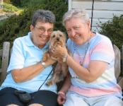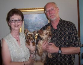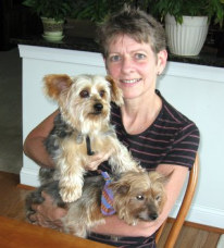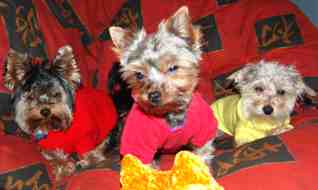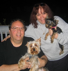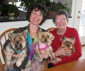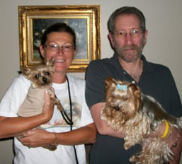 ![]() | It is hard to believe that Minnie and Benny have been with us for over two months now. They are very relaxed and behave as they have always been part of our clan. Mocha has accepted them from the beginning, and everyone is getting along fine. Minnie is doing well health-wise. She acts like any active young dog. She is such an endearing dog--her affection is endless. We will take her to our vet in September for a check-up and immunization update. I'll ask the vet about a teeth cleaning regarding her heart condition. Benny is doing well also. He has been laid-back from the beginning, but now he likes to show some affection as well (especially if you rub his chest). He makes the funniest noises when he wants some attention. He seems to identify with my husband. We are planning to attend Yorktober Fest and will bring the yorkies. Hope to see you then! |