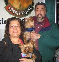 ![]() | We can't thank you enough for matching Pablo (now Nunzie) with us. From the minute he jumped in our car and we brought him home, he has been such a great dog. He has adjusted so well to our family and home, its like he has lived here all his life. He is a smart, affectionate, lovable, obedient little guy and its hard to imagine that someone would give him up. He certainly has found his furever home here with us. It took our female Yorkie, Darcy, a little time to get used to having Nunzie around, but they have become fast friends. Nunzie now spends his days playing with his pal Darcy, running laps in the backyard, going for long walk and, of course, going on his beloved car rides. He is truly an amazing dog and we are so lucky to have him here with us. |