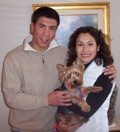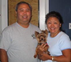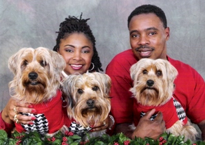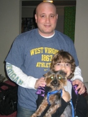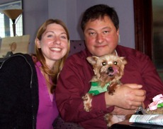 ![]() | Happy new year! Hope you had a wonderful holiday season. We certainly did, as you will see from these pictures. I wanted not only to email you and update but also share some pictures of Taylor's adventures since he has been with us. He is a perfect fit for our family and we love him so much. We constantly tell each other we are so lucky to have him. He is so good and well behaved and are our friends and family want one just like him as soon as they meet him. We kept his name, Taylor, because we had been so used to calling him that already - ever since we saw his photo on petfinder. He is doing great and I take him everywhere I can, shopping, visiting friends and family and even to work sometimes. He is doing so well that I think all three of us will be attending an obedience class soon - I think he will do great and it will help us all bond even more. Thank you to you and to Rescue Me Yorkie for letting us bring Taylor into our home, family and hearts. Donavan & Galia |