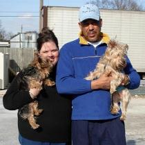 ![]() | We wanted let you know that Harley {formerly Jordie} is a little angel. We are so in love with him. The minute he came into our lives, it was as if he was always here. We can't even imagine what life was like without him. He gets along with Sasha and Roxie and they even let him sleep in their bed. They have become very protective of him. He is so affectionate and always greets us with a smile and a shake. He only had to wear the belly band for 2 days and already goes potty outside. He is not fond of the leash, but is getting used to it. At night, we put his donut bed on our bed and he sleeps there all night. He was a big hit at Petsmart when we went to get him some soft treats and a few t-shirts. We have introduced him to the family and they have all fallen in love with him too. We are so happy to have met you. You brought us a little blessing and we are very grateful. I have told so many people about you and encourage them to check out your site. Even if they are not is a position to adopt, I tell all of our friends with dogs & cats to buy one of the beds! I can't even begin to express how much admiration we have toward you and Yorkie Rescue Me. You are a guardian angel to these wonderful creatures until they can go to their forever home. Doris & Jason |