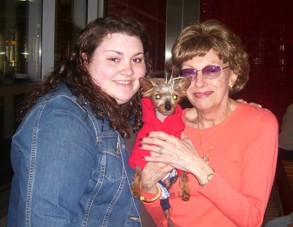 ![]() | I just wanted to send a quick note to thank all of you for a smooth and enjoyable adoption process. Cocoa came home with me last Saturday and has quickly immersed herself into my family. She is at home at my parents home, my sisters, and in my neighborhood. We have about 6 little dogs that Mickey and Cocoa associate with daily in the neighborhood, and Cocoa is everyone's little favorite. Her little face is so cute, that she causes people to stop and take notice. She and Mickey wear their sweatshirts and T-shirts as we walk in the park, and they never finish a lap without people commenting on how well behaved and cute they are. Cocoa is also a great traveler, as she stays in her car seat and often takes a nap when on the road for more than 10 minutes. The adjustment period has been short and filled with a lot of laps and a few mishaps (which was to be expected). Anyhow attached is a picture of Mickey and Cocoa, Cocoa and my mother with Cocoa. Thank you again for allowing EJ, Mickey and I to adopt Cocoa!!:) Susan |