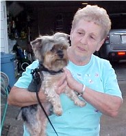 ![]() | Peanut came to us in May of 2007 after we had seen her picture on Petfinder. I called immediately to make sure that we could have her and no other dog. We had just gone through the loss of our 11-year old Yorkie Toby who was killed a few month earlier by an 87-year old man driving his car too close to the edge of the street where my husband and Toby were walking. Toby died instantly and my husband slowly recovered from the trauma. We spoke with Mary Lou of "Yorkie Rescue Me" in Pennsylvania and forwarded the application and pictures of our home to speed up the adoption. After the lengthy interviews over the phone and in writing she offered to bring Peanut to Englewood, NJ even though this entailed a 2 1/2 hour trip. Seeing Peanut was "Love at first sight" and after lunch Peanut and I took our first walk together. Our other 14-year old Yorkie Alfie accepted her immediately and very soon Peanut took over the management of our home and Alfie. She is the joy and sunshine of our l ife and we call her Sunshine Peanut now. I am very grateful that Peanut found us and the great service of Mary Lou, Yorkie Rescue Me and Petfinder. This year we have even rescued a Feral Cat, Blackie, who is intrigued with Peanut and follows her on her daily walks. Thanks for all the work you do. Ingrid |
