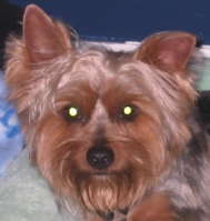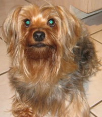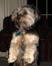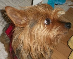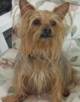 ![]() | Just thought you would enjoy a photo of Missy. She is right a home. Barks just like a Yorkie. She really is well adjusted. She goes to the door or begs like the attached photo when she wants to go outside. She must have been taught a couple tricks by her x owners. She curls up on my lap when she wants to sleep, or if I get down on my knees, she will jump into my arms. She is quite the clown. Paul and Inca |
