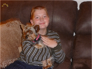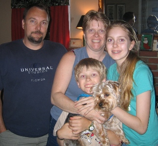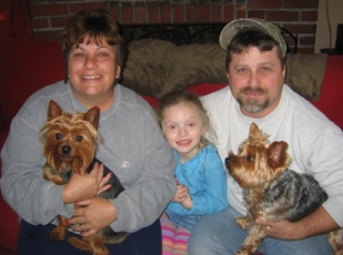 ![]() | Please post this picture to let everyone see how you blessed Kevin, Nancy, Hailee, and Gizmo's lives. Sortie, who is now known as Spanky, has had a few minor pee accidents but is a very loving Yorkie that truly fits well into our family. Hailee our daughter is overjoyed and so thrilled. We will keep updating you. Thank you so much. The Ullrich Family |