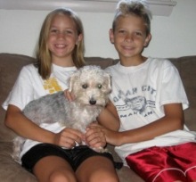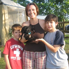 ![]() | Just wanted to let you know that Philip has blended right in with the family. He missed you and looked for you for a while, but once we took him out for a walk around the block, he perked up and sniffed every blade of grass and mailbox he could find. Every time Ken sits down in the chair in the family room, he jumps right into his lap and makes himself comfortable. Best of all, at bedtime we showed him Logan's room and he immediately wanted to sleep on Logan's bed. Logan was over the moon about that. Philip jumped right up and found a spot at the bottom. The two of them slept straight through without a peep. Philip truly has got to be the most 'chill' dog ever born. He's the exact dog that Logan wanted, and the exact dog we wanted for him.Thank you so much for all of your help and I'll keep you posted on how he's doing! Kathleen |