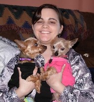 ![]() | I just wanted to let you know Gizmo seems to be getting quite comfortable here. Gizmo and Cinamon are fine together. She is running around the yard barking at birds and squirrels. She loves to go for walks. She is afraid of strangers coming into the house, but they dont seem to bother her outside of the house. Also she has been to the groomer and she was fine. I switched both dogs to Halo dog food which they both like. Thanks so much, Chrisann |