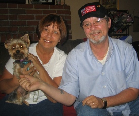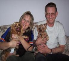 ![]() | I thought I'd send some pictures to you too, since you fostered Romie for a short too. I can tell you he is a fun, happy little dog and his new sisters, my husband, Jon and I adore him. He is very grateful to be here. Its funny how you can just tell. We love him and he worked out well. I'll never forget that in your description of him on the website you said, "he can be a brat if you let me". You're right! I think it had to do with him being caged all the time and never having freedom to run. He doesn't know what to do with himself when he's free in the yard and in the house. His biting skills are still very precise and I've never seen a little dog that can raise his lip as good as Romie can!! ((-; BUT, he has no reason to do that anymore. He trusts us now and is relaxed and happy. He sleeps under the covers with me and is at my side constantly. I am planning on attending the Expo in February. I had spoke briefly to Vickie about joining Yorkie Rescue and helping where I can, but am thinking that I can make more of a commitment to your group when I am retired in the summer of 2008. I will say that if ever there is anything I can do for you, please don't hesitate to contact me. Again, thank you for allowing me to adopt Romie. We absolutely adore him. See you in February! Annette |