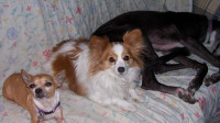 ![]() | I forgot what it was like to have active babies in the house. They have met almost my entire family and many friends, and everyone is in love with them, as are we. They gently play with Chichi sometimes and that thrills us. Suki is the total Diva and our little terror that cracks us up. They have been great walking at the park, traveling in the car, and did pretty good at our RV overnight. They just love each other and so glad they will be together. I keep them active as much as I can. Chili is in our bed now at night. I have to take a video of Suki playing with a rawhide stick it is the cutest thing. I think they are getting to know that this is home now. Thanks, will be keeping you posted. Sue |