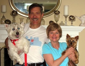 ![]() | Just want to let you know that the Boys are getting along great. They love to chase the squirls in the back yard. Here is a recent picture after their return from the groomer.He still has a little problem with the cats, but getting better. We just love Pepsi, really happy we adopted. Jim & Joanie |