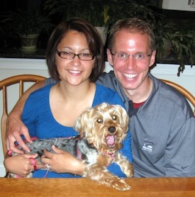 ![]() | I still can't believe how fast everything moved from filling out the application to coming home with a little furbaby! I guess when things are meant to be, they happen as they should. Zsa Zsa is incredible, I feel so lucky that she chose me! She has adapted well, jumping up on the couch and rolling over for a belly rub within minutes of being home. She is very playful and loves any and all attention. She only gave a soft bark when Chris came home to let him know that she was here, but once she saw him and realized he would pet and play with her as well, she fell in love with him too! This little spunk of a girl spends hours playing (with tennis balls, squeaky toys, anything she can get her paws on), but the moment we sit down or go to rest, she is right up there stretched across our lap or cuddled up against us ready for her doggie massage. She spent the whole night cuddled up under my arm and woke up to kisses when the alarm clock went off. She has not had any accidents as of yet, she has been very good at going out for nice long walks where she can explore and get to know the other dogs in the neighborhood. We are head over heels for this little girl and it looks like she feels the same for us. Thank you so much for all your help and to the whole Yorkie Rescue organization, this was a match made in heaven! Michelle and Chris |